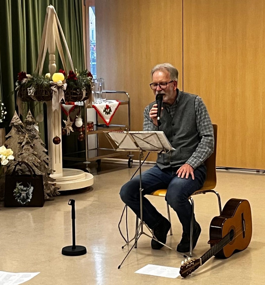 Chorleiter Hannes Ebner beim Lesen der Weihnachtsgeschichten